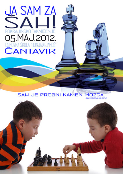 25.04.2012. Čast nam je i veliko zadovoljstvo da Vas obavestimo da je naša ustanova pozvana na prvi šahovski turnir “JA SAM ZA ŠAH”, koji će se održati 05.05.2012.  godine u prostorijama osnovne škole HUNYADI JANOS u Čantaviru sa početkom u 10:00 časova.