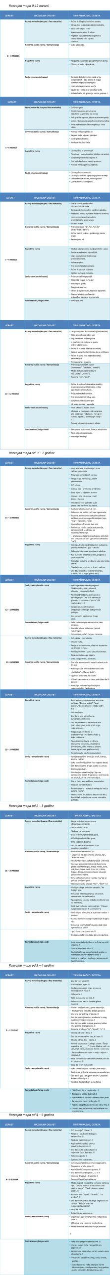 Važno je znati da razvojna mapa služi samo kao okvirni pokazatelj razvoja, a ne kao merilo za utvrđivanje “normalnosti” razvoja.